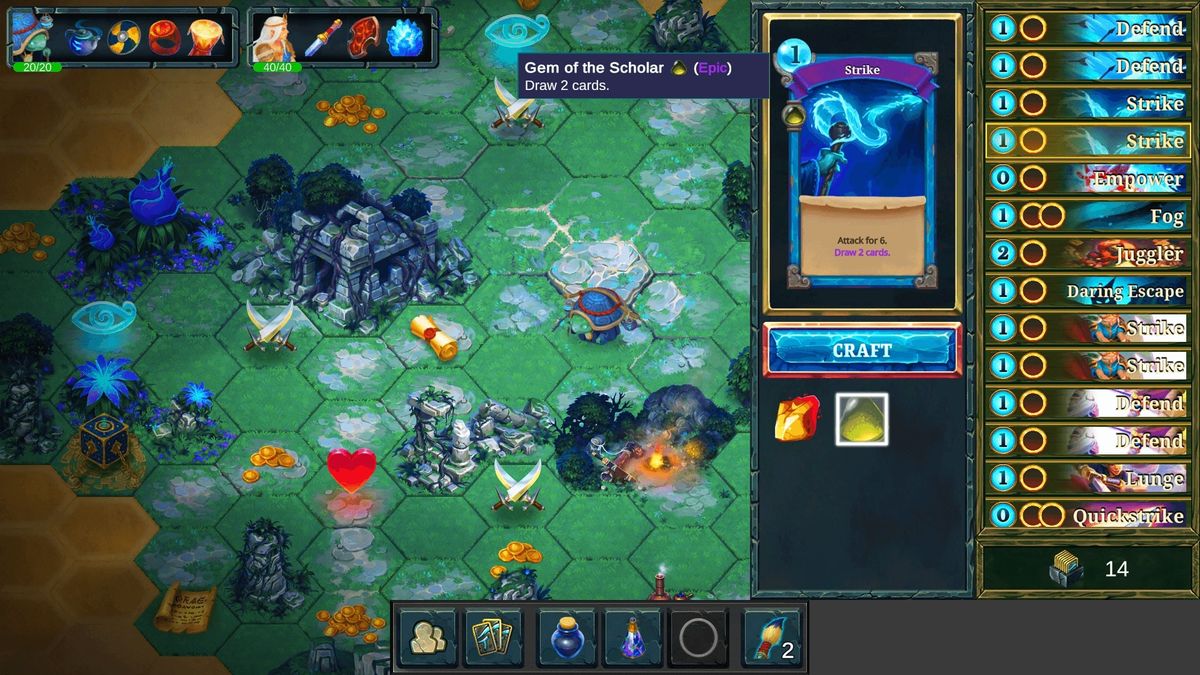 You are trapped in the Book of Faeria legends and each page represents a new challenge. Lead your duo of heroes to victory in this roguelike deckbuilder co-designed with Richard Garfield, the author of Magic: The Gathering™. Create the best synergies of cards, treasures, and abilities and measure yourself against the Roguebook.