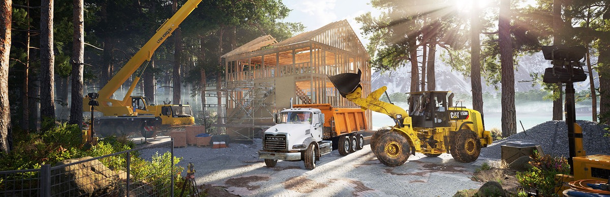 With Construction Simulator 4, drive through a fictional country inspired by the vast landscapes of Canada and explore three large interconnected areas. Each region offers its own extensive campaign with unique challenges that you must take on with your growing construction company. Rely on a wide range of renowned vehicles and machines from brands such as Atlas, BELL, Bobcat, Bomag, CASE, Caterpillar, Kenworth, Liebherr, Mack Trucks, MAN, MEILLER Kipper, Palfinger, STILL, the WIRTGEN GROUP, CIFA, DAF, and Scania.
