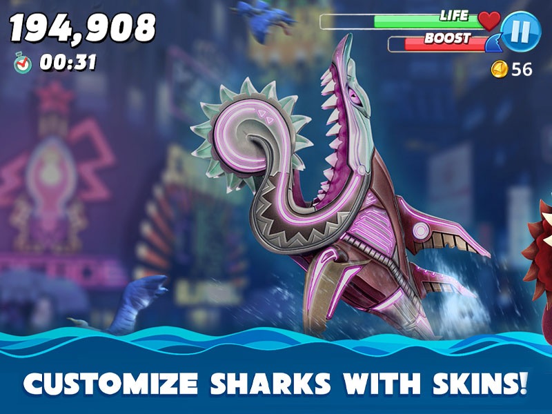 Control a shark in a feeding frenzy and eat your way through many oceans feasting on everything from bite-size fish and birds to tasty whales and unwitting humans! THIS GAME IS ONLY COMPATIBLE WITH iPhone 5S or later, iPad Mini 2 or later, iPad 5 or later, iPad Air 2 or later and iPod 6th generation or later, devices running on Android 5.0 or above.